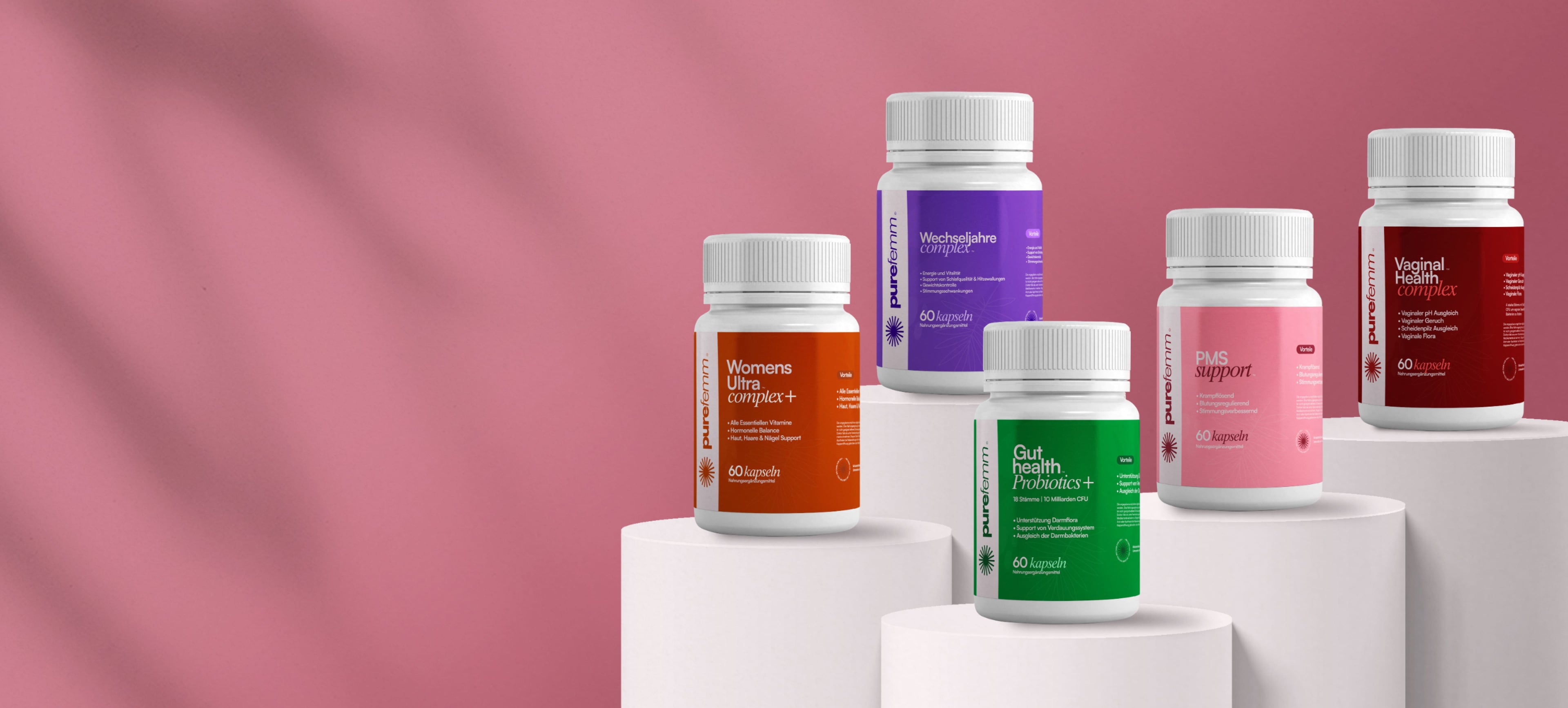 Bei Purefemm glauben wir fest daran, dass jede Frau die Kraft besitzt, ihr volles Potenzial zu entfalten. Deshalb haben wir es uns zur Mission gemacht, hochwertige Gesundheits-Supplements anzubieten, die speziell auf die einzigartigen Bedürfnisse des weiblichen Körpers zugeschnitten sind.